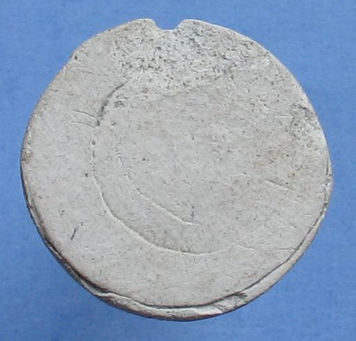 Kleischijfjes: 17e 18e Eeuw ? Vindplaats: Peperstraat Gouda Opmerking: De twee schijfjes zitten aan elkaar vast gebakken. Waarschijnlijk waren ze ooit bedoelt geweest te gebruiken als Grospenningen