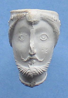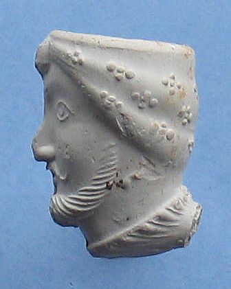 Pijpenkop: Eind 19e eeuw Vindplaats: Achterwillens te Gouda Model: Figuraal Gezichtspijpje