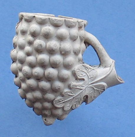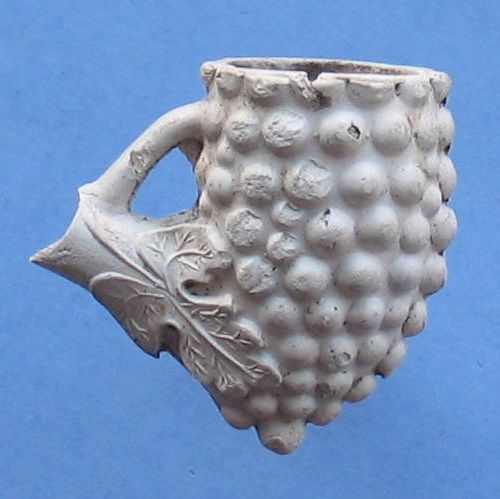 Pijpenkop: Vierde kwart 19e eeuw Vindplaats: Hemrik Friesland Model: Figuraal Druiventros Opmerking: In de Catalogus van N.V. Goedenwaagen van rond 1900 staat deze pijp te koop onder nummer 366 van Serie 6.