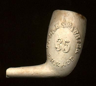 Decoratie links: Twee gekruiste pijpen met daar omheen de tekst VAN