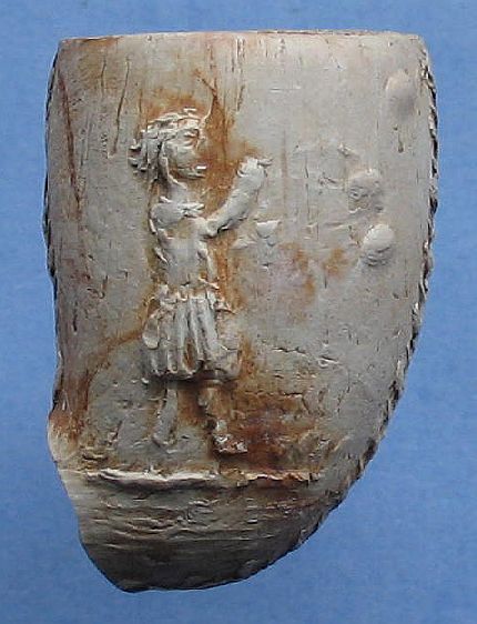 Reliëfmerk: Jongetje en meisje beide bellen blazend