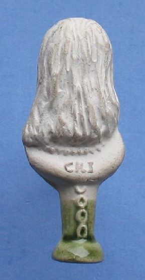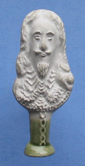 Pijpenstopper: 1972 - 1990 Materiaal: Pijpaarde met aan de onderzijde groen glazuur Tekst: CRI Voorstellend: Charles Rex I Fabrikant: Eric Ayto, Hampshire